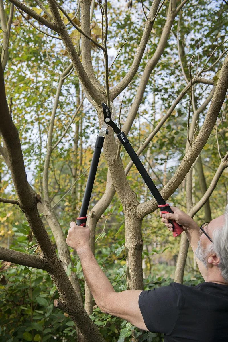 De Kreator KRTGR4001 takkenschaar is 66,5cm lang en je kan er takken met een maximum van Ø 34mm doorsnede mee knippen.